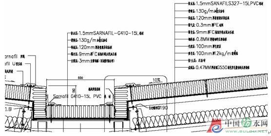 該屋面及天溝的構造層次(如圖3.1.3-2)采用聚酯纖維織物內增強的聚氯乙烯(PVC)卷材作防水層,其施工要點如下: