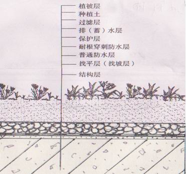 4)耐根穿刺防水層完成后,根據設計要求在其上鋪設其它構造層次并種植植物。